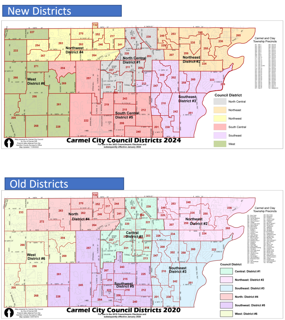 Just four years ago the district was conspicuously altered by the council. In 2018, the Carmel Council voted 6-1 to approve a new district map that removed 6 precincts in the western part of the Southwest district with a little more than 5 months prior to an election and replaced those precincts with 10 new precincts including the newly annexed Home Place.